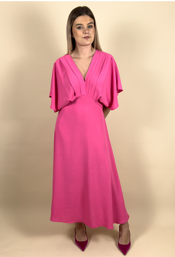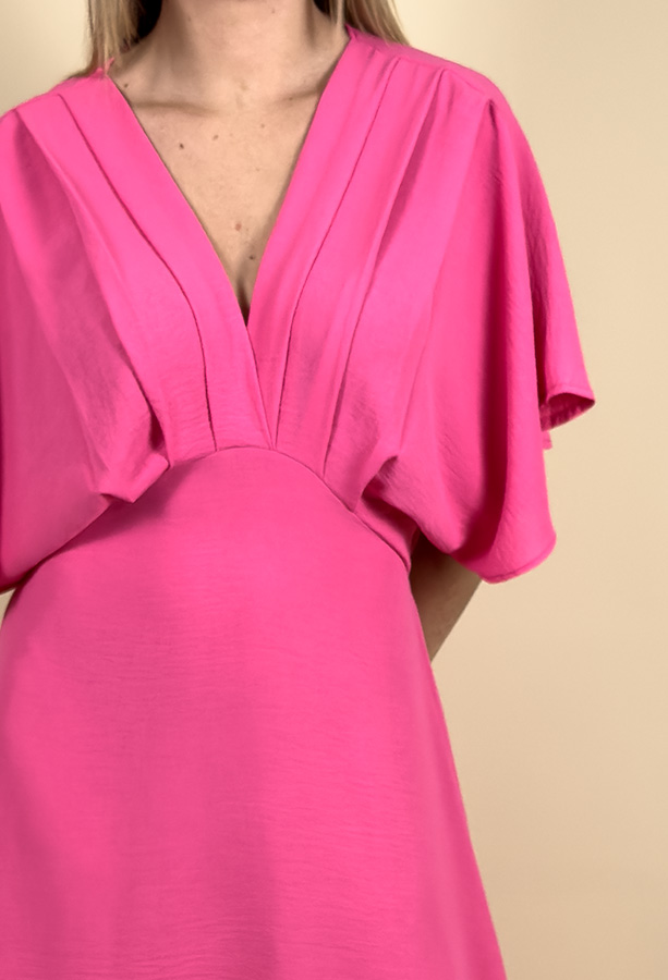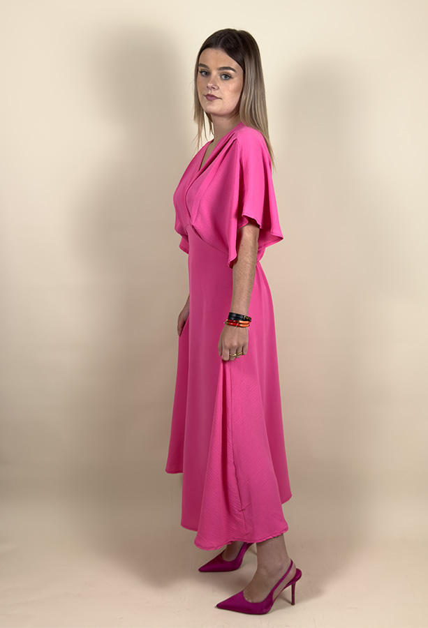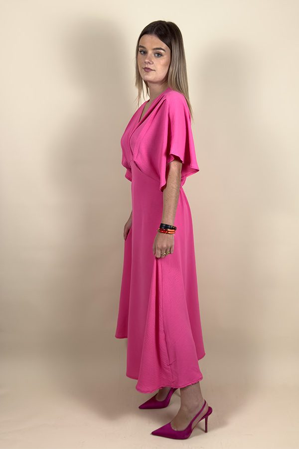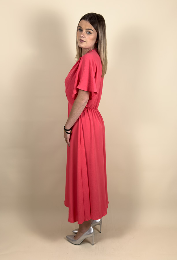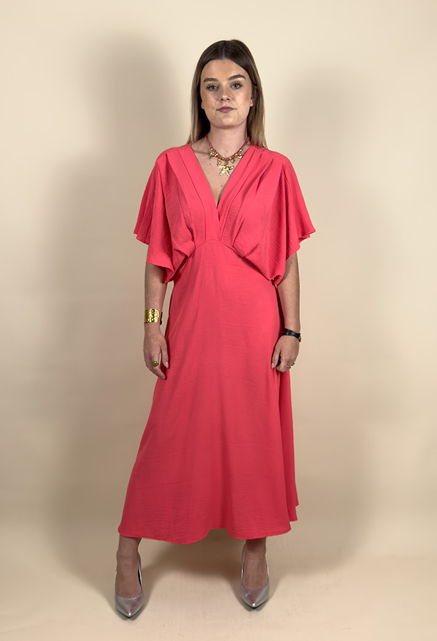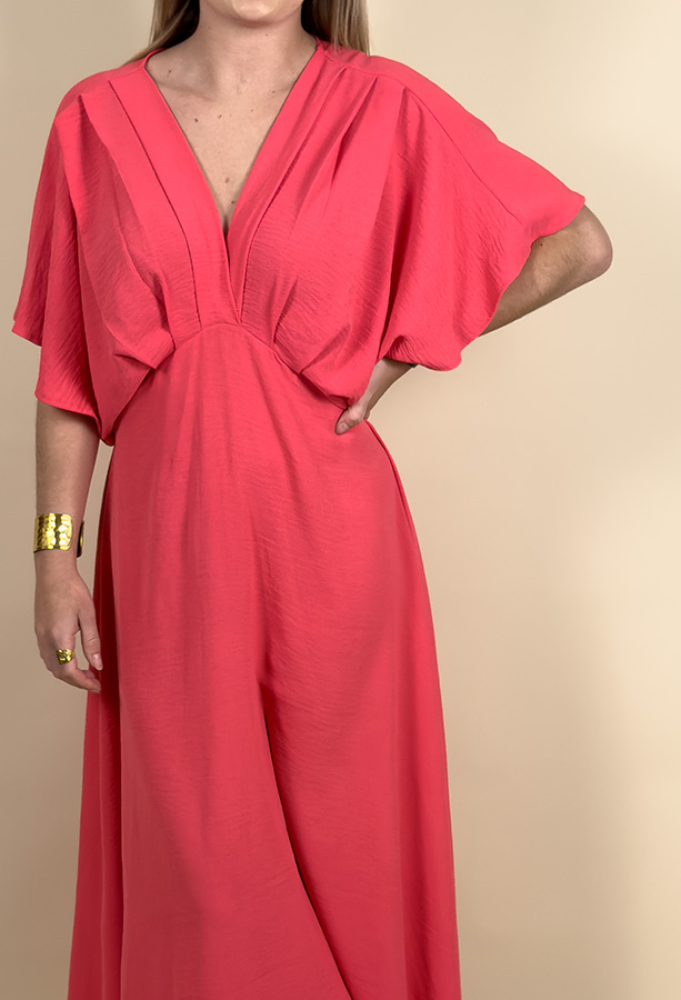 The Élise dress charms with its light and airy fabric, perfect for sunny days. Its long, flared cut flatters all silhouettes, while the V-neckline and draped sleeves add a feminine and relaxed touch. Elasticated at the waist for absolute comfort, it comes in two vibrant shades: Coral and Flash Pink.