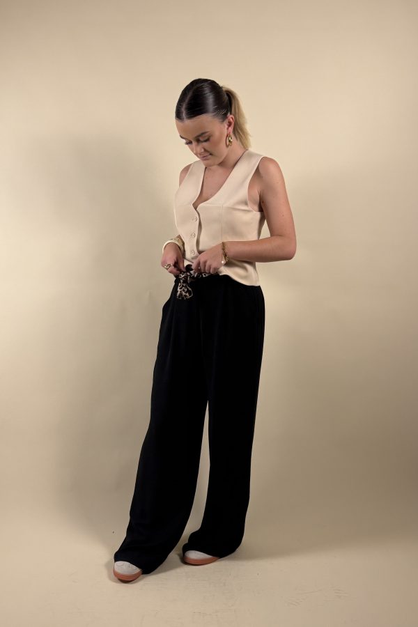 Available in black, beige, and navy blue, in sizes S, M and L, this vest is a versatile must-have in a chic wardrobe.