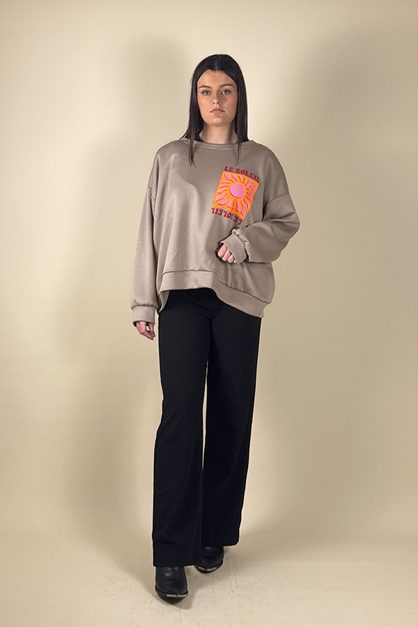 The Soleil sweatshirt is a must-have piece for a relaxed and radiant look. Its oversized fit delivers exceptional comfort and a decidedly modern style. Perfect for adding a luminous touch to your outfits, it comes in khaki, beige, and navy blue to suit every mood and style.