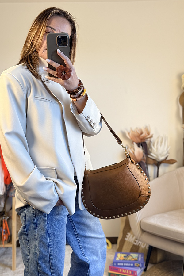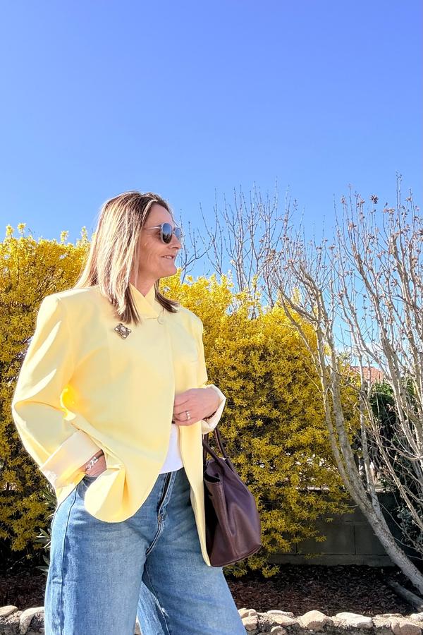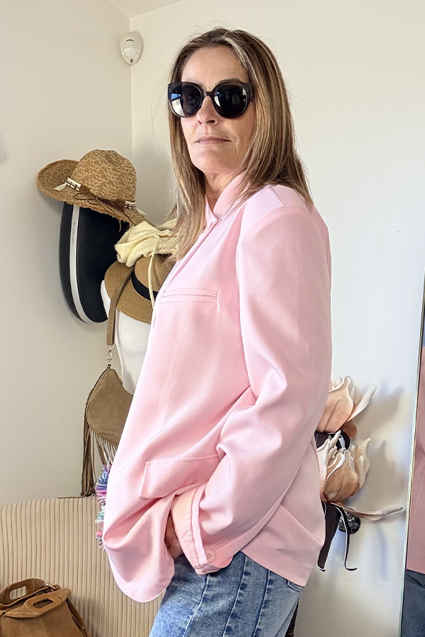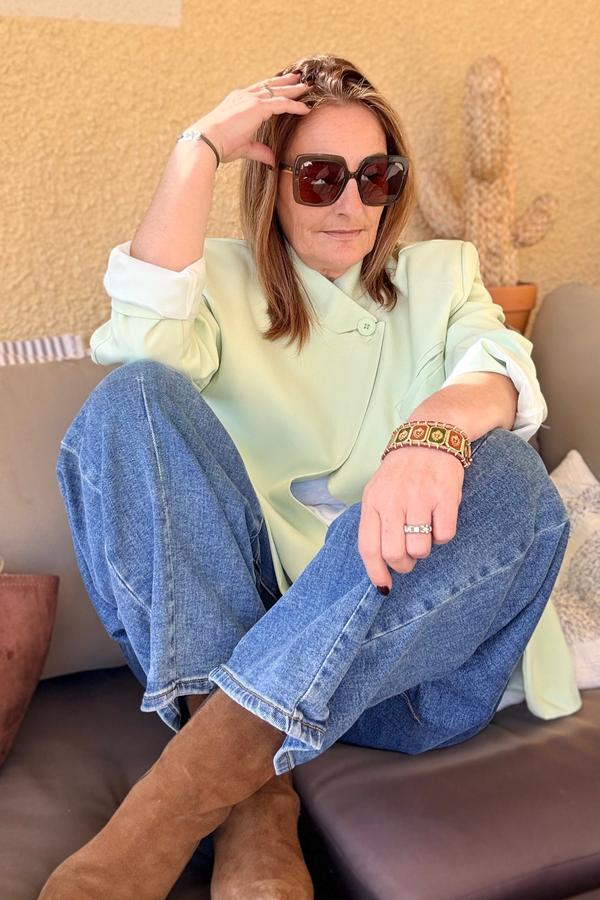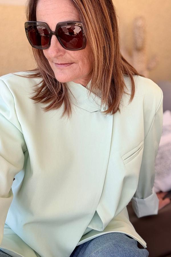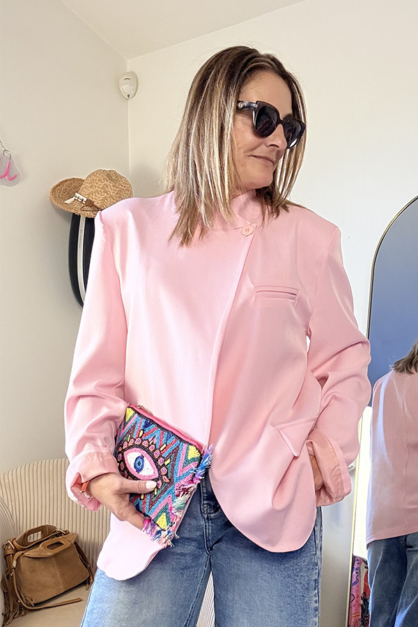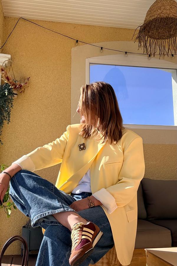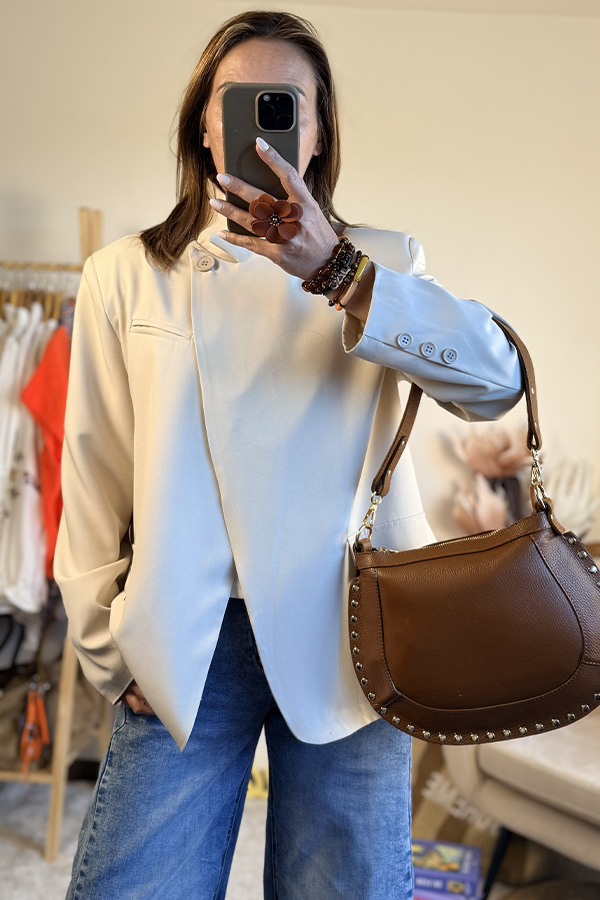Le blazer Louane se distingue par sa coupe asymétrique qui apporte une touche contemporaine et élégante à la silhouette.