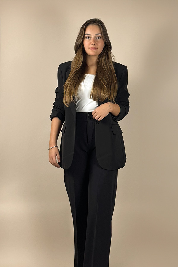 Le blazer « Victoire » incarne la puissance et le raffinement. Avec ses épaules larges et sa coupe parfaitement taillée, il offre une silhouette affirmée et sophistiquée.