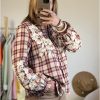 Ses manches longues ornées de broderies ajourées apportent une touche délicate et féminine, tandis que les poignets élastiqués créent un joli volume sur les bras.