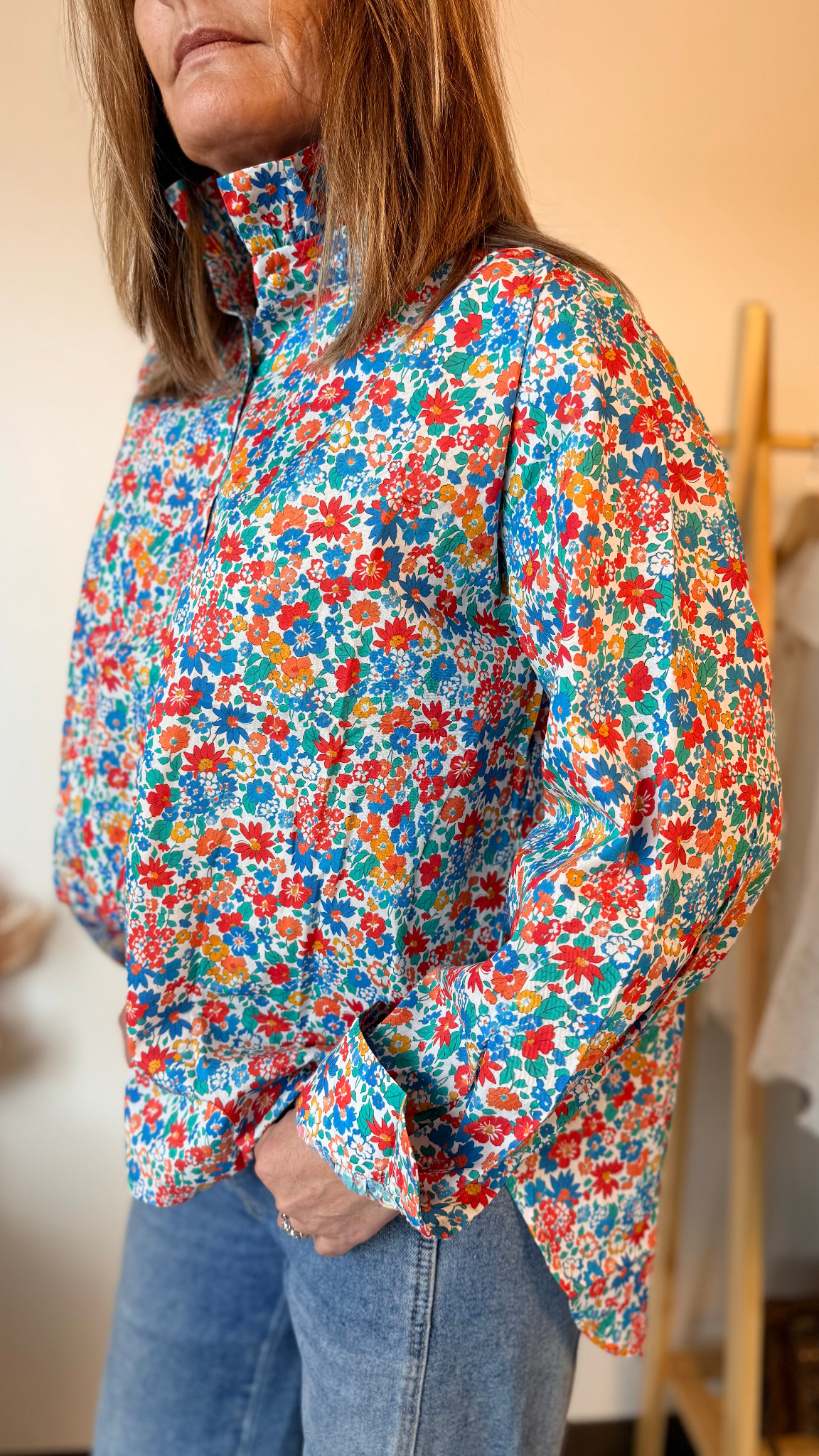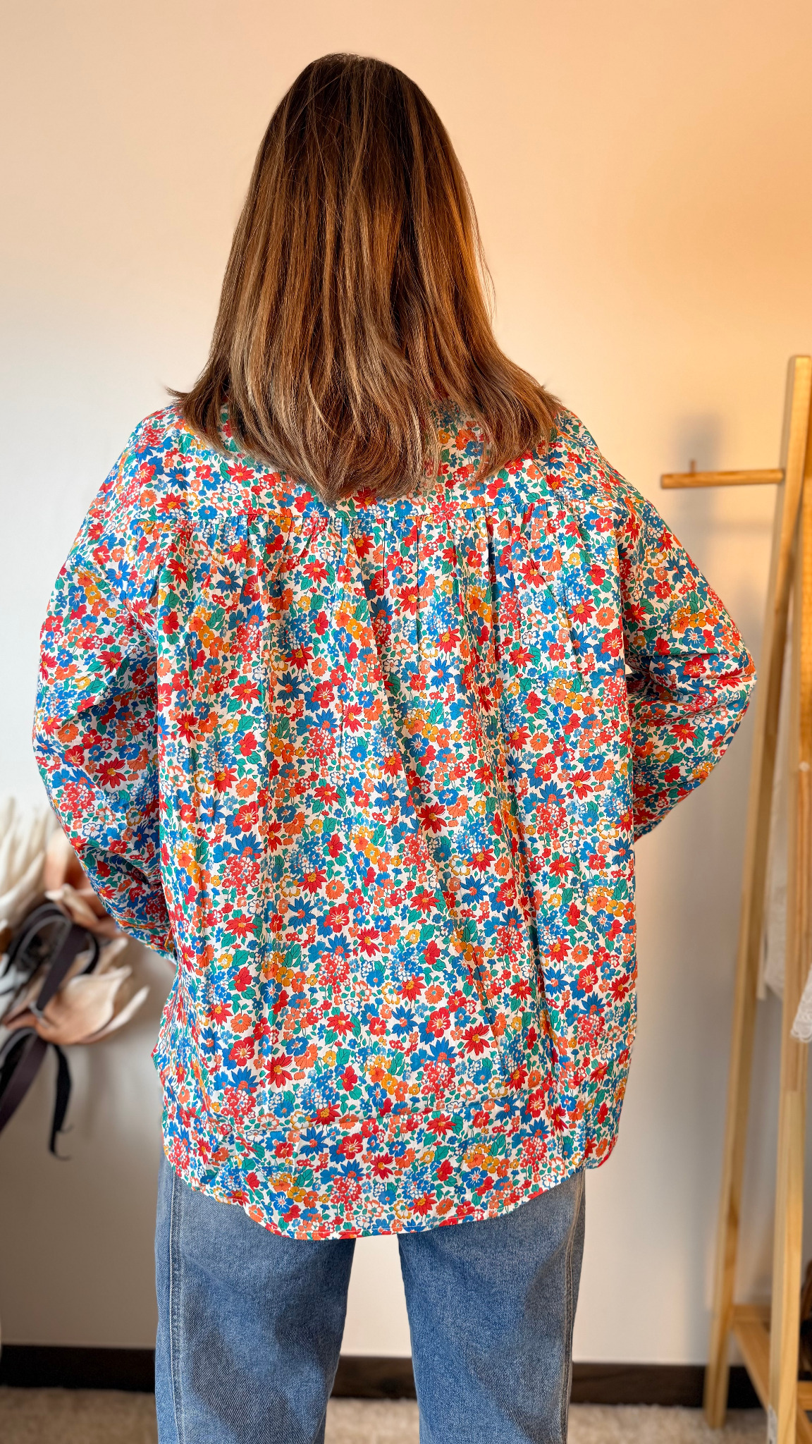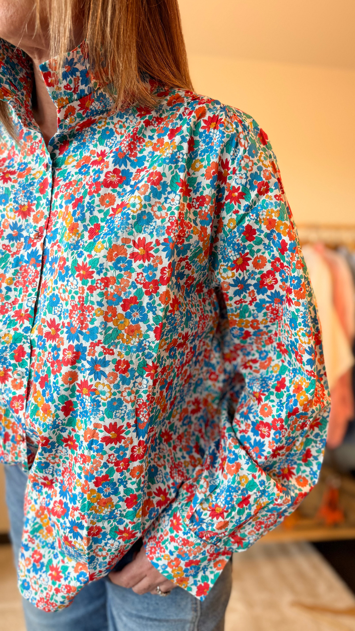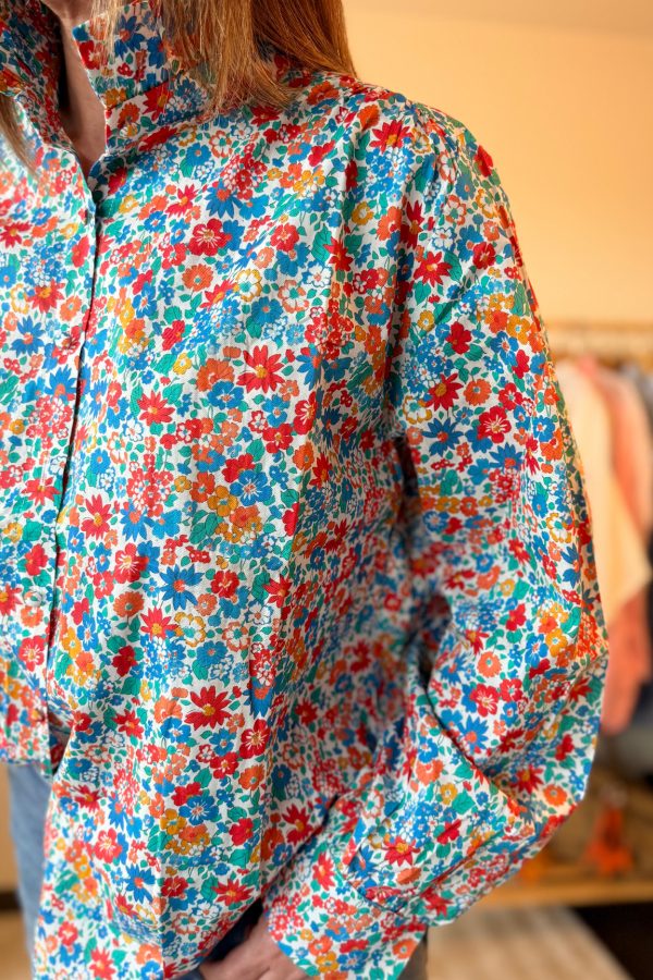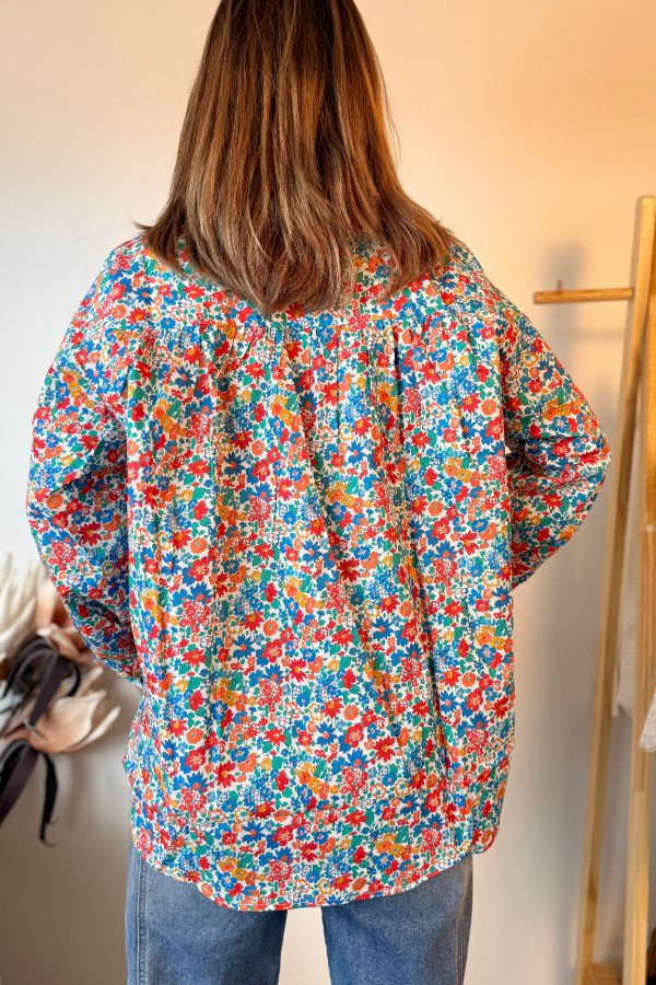 La chemise Liberty séduit par son imprimé floral délicat et son col victorien raffiné qui lui donnent une allure romantique et élégante.