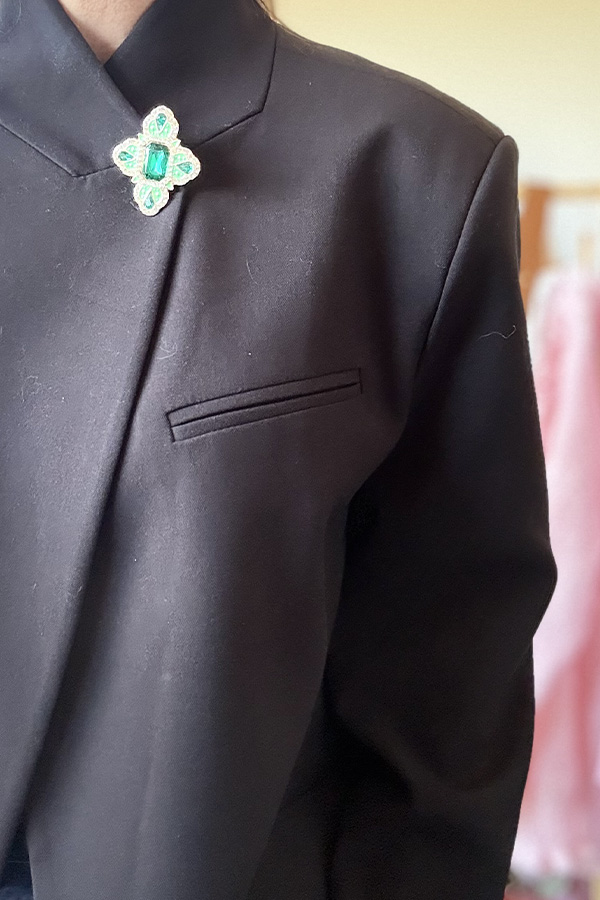 Le clip Pénélope vert se suffit à lui-même : ajoutez-le sur une pièce simple pour créer un look unique. Il peut aussi se mixer avec d’autres accessoires pour un style encore plus affirmé.