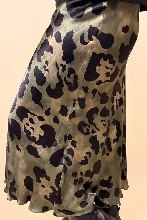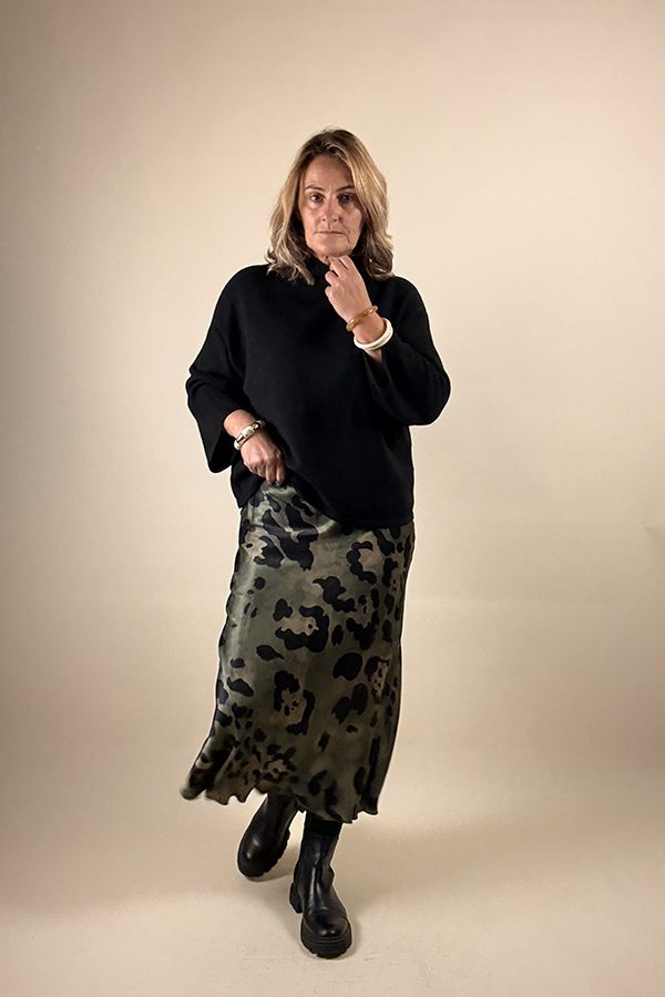 La jupe « Loriane » allie l’audace du motif léopard kaki à l’élégance d’un effet soie fluide. Sa longueur midi/longue et sa ceinture élastique en font une pièce confortable et flatteuse pour toutes les morphologies. Elle apporte une touche sauvage mais raffinée à vos tenues, parfaite aussi bien en journée qu’en soirée.