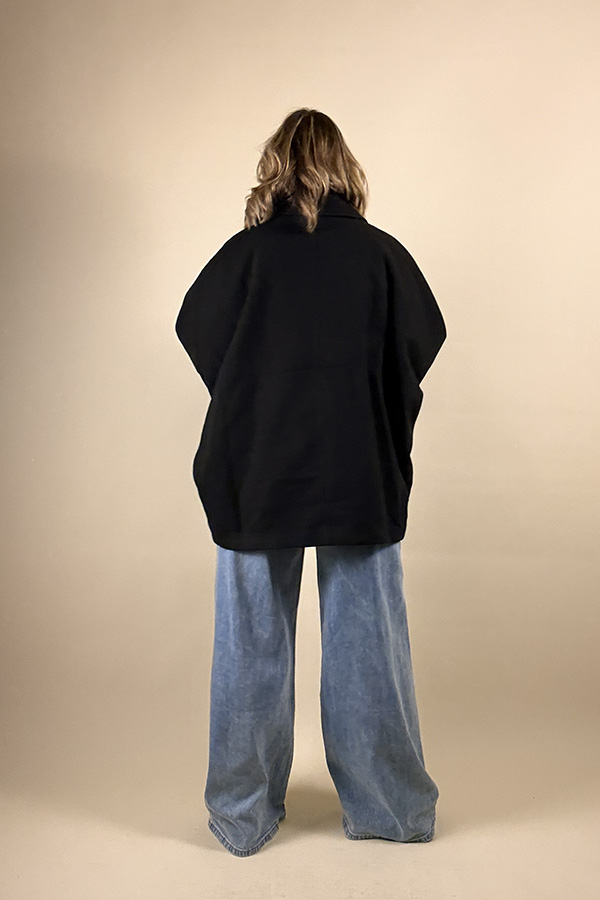 Le manteau « Sia » impose son style avec sa coupe oversize et ses manches chauve-souris, apportant un volume moderne et ultra confortable.