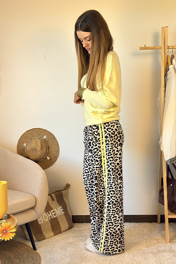 Pantalon « Lisa » – Jogger Léopard & Bande Jaune