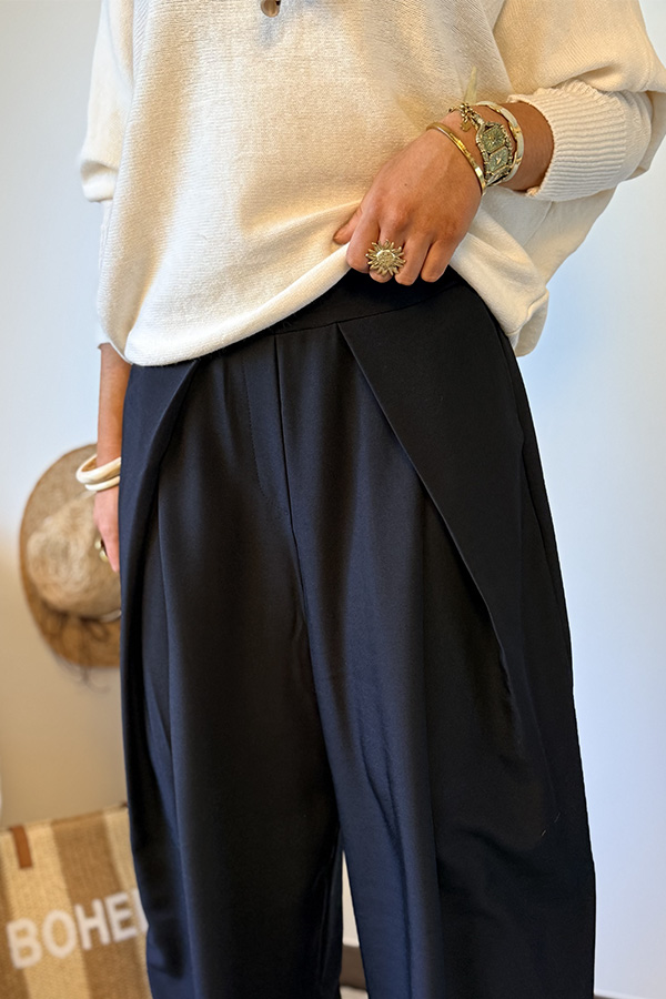 Le pantalon « Sylvana » séduit par sa coupe large et fluide qui apporte immédiatement une allure élégante et moderne.