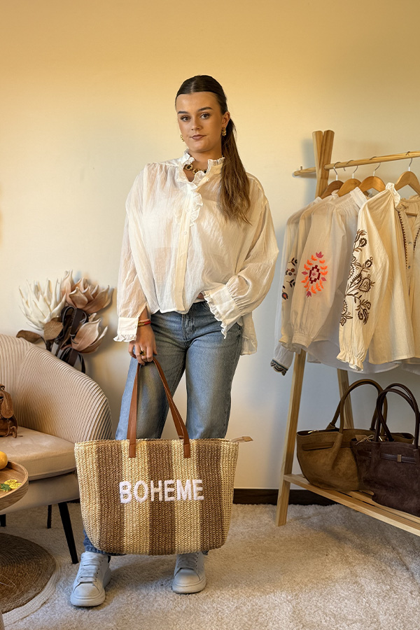 Le sac « Bohème » est l’accessoire idéal pour accompagner vos journées ensoleillées. Avec sa matière tressée naturelle et son inscription BOHEME, il incarne parfaitement l’esprit chic et décontracté de l’été.